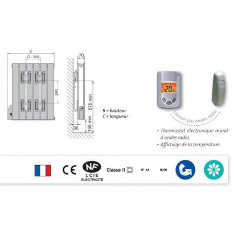 Radiateur électrique disponible en puissances 500W, 750W, 1000W, 1250W, 1500W et 1750W ainsi qu’en modèle vertical (Tamari V).