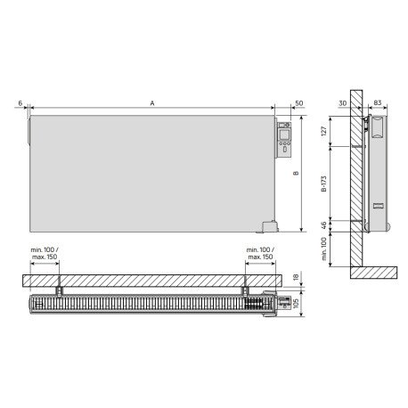 Radiateur inertie plinthe disponible en 500W, 750W, 1000W, 1250W, 1500W et 2000W ainsi qu’en version surface rainurée plinthe et horizontal.