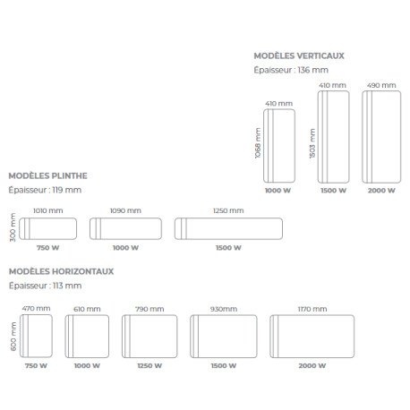 Radiateur électrique disponible en 3 puissances : 750W, 1000W et 1500W ainsi qu’en format vertical et horizontal.