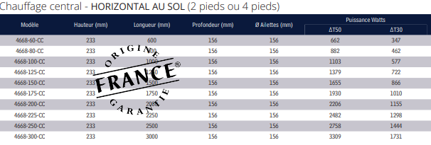 VD4668 – Chauffage central – Pose horizontale au sol (2 pieds ou 4 pieds)